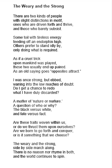 This is a musing from 2015. It is one of the many musings in my first poetry book "Overcast Mind," (published in 2017).
