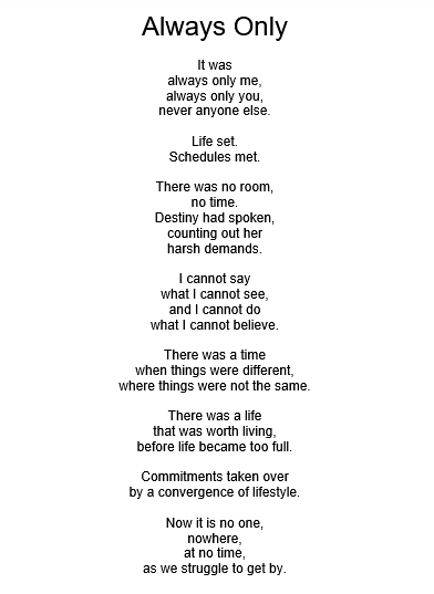 It is always a pleasure to have a poem published by Spillwords. Thank you editor Dagmara for publishing my poem "Always Only."