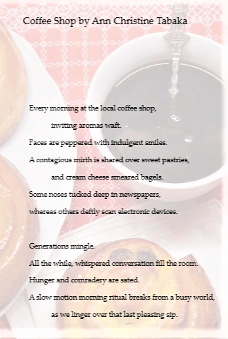 I am thrilled to have two poems published in The Writers’ Magazine (UK). Thank you to the editor for publishing “Coffee Shop” and “Straws, and Bottles, and Bags, Oh My!“