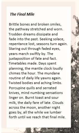 I am excited to have two of my poems "The Final Mile" and "A House in Ruin" published in the prestigious "Between These Shores." Thank you editors Adele C Geraghty, and Robert Dunsdon.