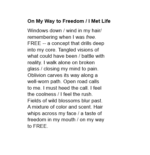 I am thrilled to have my poem “On My Way to Freedom / I Met Life” published by the Piker Press. Thank you, editor Sand Pilarski.