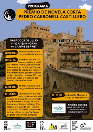 Como comenté en mi anterior entrada, el sábado 21 de julio estuve en las localidades de Valderrobres y Fuentespalda como finalista del I Premio Pedro Carbonell de novela corta de Fantasía y Ciencia Ficción con mi obra Nación.
