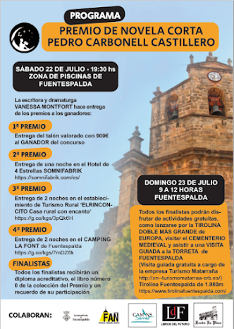 Habrá actividades relacionadas con el premio el sábado 22 a partir de las 11:00 en la localidad de Valderrobles (Valderoures), provincia de Teruel, y la ceremonia de entrega del premio se realizará en Fuentespalda (Fontdespatla), provincia de Teruel, el sábado 22 de julio a las 19:30.