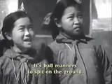 Anti-spitting campaign in China, c. 1950.Two girls chasti...