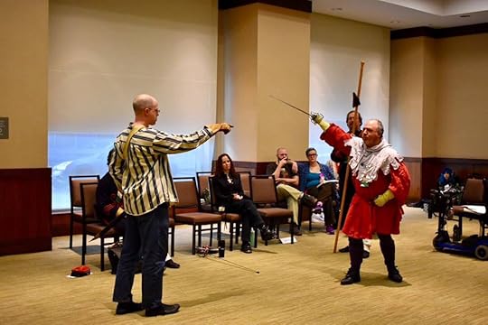 Writing Swordfights and Hand-to-Hand Combat – Writing, Panel – 1hr 15min – Otis (2W)Violent encounters are a good way to up the tension in your story. Our panel of martial artists will not only explain the phases of combat, what goes through their mind prior to ‘going at it’, and what makes a realistic swordfight, knife-fight, stick-fighting or hand-to-hand encounter, but they will also demonstrate a few basic moves, answer questions, and help one lucky attendee work out the mechanics of their work-in-progress.Mark J. Millman (m), Michael Bailey, Genevieve Iseult Eldredge, Paul Kenworthy, Daniel Marsh