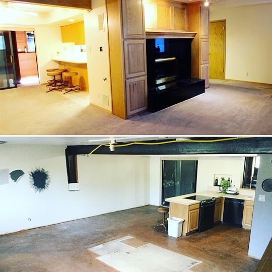 Finally, we wanted to open up the kitchen/ living room area. It was kinda cave like. Little did we know that the prior owners had cut a chunk out of the main support beam for the upstairs... yeah... that's a big no no, not up to code at all. So we had to put a steel beam in so that our upstairs didn't become our downstairs. Lol.