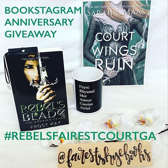 First the RULES:1. Like the original post on Instagram via @fairestskyebooks2.You must follow myself @frost.kay.authorthe fabulous bookstagrammer @fairestskyebooksSwag creator Jami @rich_love_shoppeand candle maker extraordinaire Jess @wickandfable3. Repost this main photo on your IG account using tag #rebelsfairestcourtga4. Tag three friends in the comments on the original post!DON'T FORGET TO FOLLOW ALL THE RULES OR YOUR ENTRY WON'T COUNT!NO Giveaway, Spam, or Private accounts, please.PRIZE TIME!!!Signed copy of Rebel's Blade
