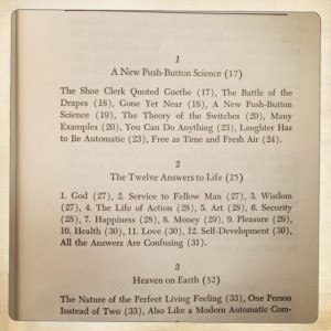 This book is written in a winsome, witty style. Read the contents of chapter 2, The 12 Answers to Life. Along with the usual suspects (God, service, art, love, etc.), there’s a section called All the Answers are Confusing to help the reader sort out what might seem like conflicting advice. I love a self-help book that helps itself!