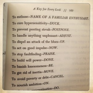 In spite of my general aversion to “power of positivity” peptalks and a tendency to dismiss most self-help books, I really enjoyed The Secret of Perfect Living! The writing is clever and engaging, and the way Mangan framed internal struggles really resonated with me. I am not on board with the notion that specific words are the perfect switchword for everyone, but I appreciate the author’s attempt to outline them. Some make great sense, while others seem silly.