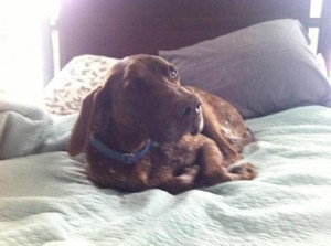 Our sweet German Short-Haired Pointer Ollie was unfailingly plucky and uncomplaining throughout his many health trials. This winter he took a turn for the worse. He was suffering from cancer, seizures, and autoimmune problems, but had been stoically hanging in there, cheerful as ever. We really wanted his last moments to be peaceful and cozy with us by his side, so we decided to put him to sleep a couple weeks ago rather than wait for a traumatic health event. He was 11 or so years old and had lived a good and full life on our farm since we adopted him several years ago, but as any animal lover knows…it is hard to make the decision, even when it’s the right one.