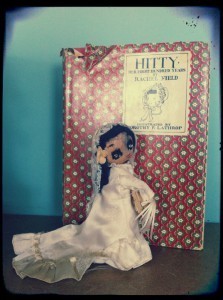 Fast forward to several years ago, when I stumbled across an online article that said (as I recall–I can’t find the original source now–was it a dream?!) that Rachel Field’s homestead in Maine was for sale, virtually intact with original furnishings, etc. because of its remote island location. You can see recent pictures of the place here, it appears to be happily occupied and pretty much intact! (Sadly, there goes my secret dream of perusing the abandoned homestead in search of undiscovered manuscripts, trinkets, and other treasures.) Another website, hittypreble.com, details the real-life inspiration for many elements of the story. As a testament to the character’s charm and the book’s staying power, there are dozens of websites selling Hitty dolls and accessories, swapping stories about collectors’ Hitty dolls, or even holding Hitty meet-ups. You can see the original Hitty doll at the Stockbridge, MA Library Museum.