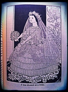 I loved dolls as a kid, still do. I do not love creepy, untouchable, too-lifelike dolls at all. But I adore a well-worn doll like the title character in The Best-Loved Doll by Rebecca Caudill (and not unlike the slightly tattered blankets I collect). I always hoped I’d find my own special, legendary doll worthy of bringing to a party. One day Hattie (pictured above with the book) arrived by mail. She was a husk doll from Hawaii, a gift from my godfather Clarence who was living on Oahu at the time. Peek inside the book and you’ll see why I was especially thrilled: My Hawaiian Hattie was as close to Hitty as I thought a doll would ever get, right down to the tiny pearls on her wedding gown.