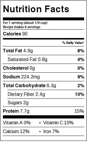 Break the tofu into four pieces, and add it to a food processor or blender. Add in the onions and garlic, and all of the remaining seasonings. Blend until smooth and creamy stopping to scrape the sides as needed.