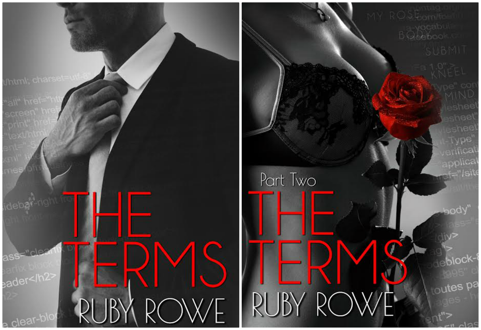 The Terms ends in a cliffhanger. It contains explicit language and graphic sex, including aspects of BDSM. The second novel in the duet, The Terms: Part Two, is available for purchase in eBook and paperback. Audible format will be available mid-October.