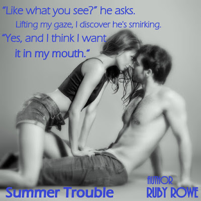 Below is the blurb for my first erotica romance, Summer Trouble: A Ruby Romp Novella. It's a smokin' hot read releasing March 9th! Be on the lookout for the cover and pre-order links. They'll be available soon.