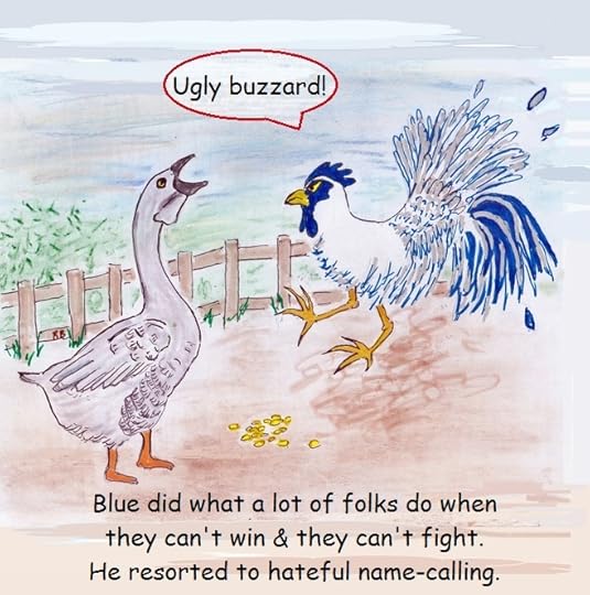Blue flew up in a frenzy and stuck out his talons, crowing, “I’ll fight him.”