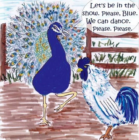 The barnyard was quiet as midnight for a minute. That peacock was the one thing every last animal agreed on. They loved him – even Blue, though he’d never admit it. Then pandemonium broke out, with cries of, “No! No! Not Sunny! No! He can’t.”
