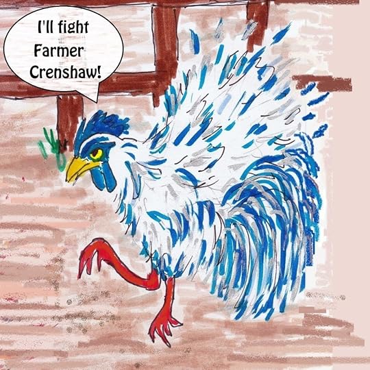 “Harrumph! As I was saying, Farmer Crenshaw came home with this young rooster by the name of Blue Tommy Joe. With a bright blue comb and tail feathers, he was as pretty a bird as anybody on the farm had ever seen. Yep. Blue Tommy sure was a fine bird, with long talons and a wing spread four times the width of his body. He was a proud bird too – cocky, so to speak.” The girl giggled again, which brought a mock stern look from her uncle.