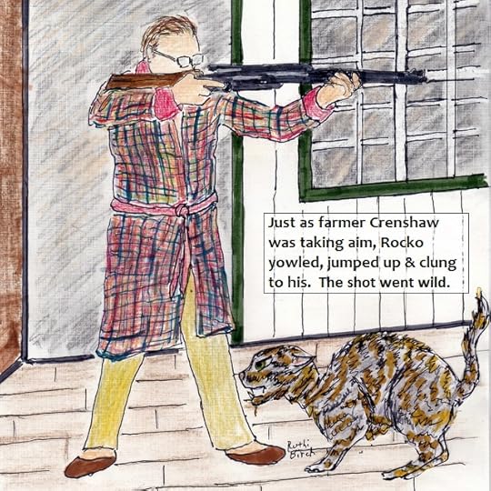 The little play was about to come to a sad, sad end. But Rocko saved the day. Just as Farmer Crenshaw was pulling the trigger, Rocko yowled, jumped up, and clung to his arm. The bullet went wild.