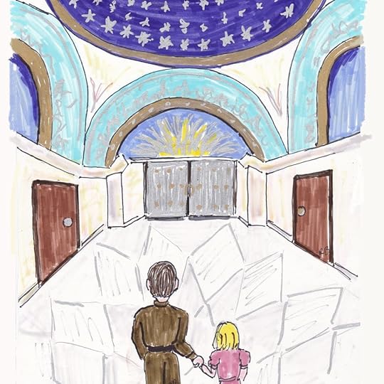 It was my first time in a bank and I thought it looked like a palace. The room was bigger than a church, and fancier than any church I’d seen, with silvery floors, walls painted with pale blue rainbows, and a round ceiling that looked like a night sky full of stars.