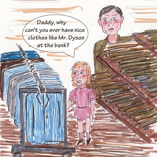 While he was paying the salesman, I blurted out, “Daddy, why do you have to always wear khakis instead of nice clothes. Why don’t you get a suit and white shirt like Mr. Dyson at the bank?”