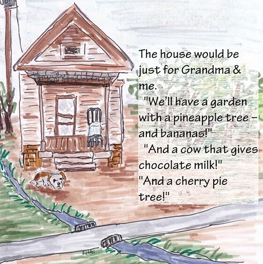 Suddenly, Grandma would sit forward, point at a lonely shack by the side of the road, and in a voice filled with excitement say, “Look! That little house is just the thing for us. Let’s fix it up and live there, just the two of us. We’ll play games all the time, and there’ll be nobody to tell us what to do, what to eat, or when to go to bed. Now, let’s see, what will we need? Hmmm,” she’d pause and I’d jump in with, “a bed, and a table.”