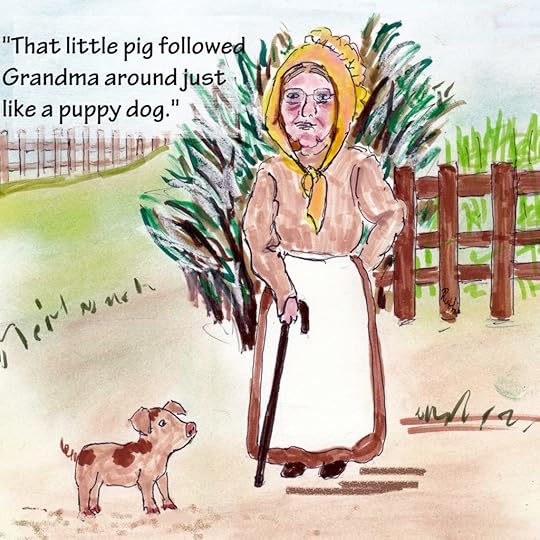 Grandma lived with us in a room Daddy built especially for her. That room was a treasure chest filled with eighty-five years worth of things to entertain a child. There were albums with pictures, old and new, of family members I’d never even met, and there was a story to go with each picture. There was one brown picture from way, way back when Grandma was a little girl. Grandma told me traveling photographers used to come by the farms and take pictures. The sweet-faced old lady in a sun-bonnet was my Great-Grandma Thomas, a sweet-faced old lady in a sun bonnet, and right beside her was a cute little spotted pig.
