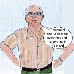When I was a kid, my daddy got fed up with having to replace things. He preached a principle — a place for everything and everything in its place. I must have heard him say it a thousand times because it stuck. I have to admit it’s better than buying a new pair of scissors every time you need to cut something.