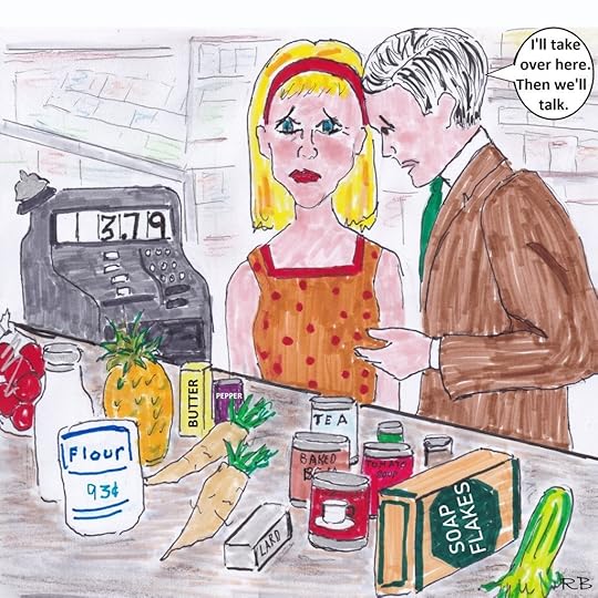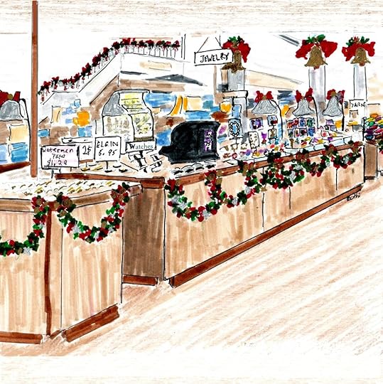 I started with Daddy. It would be the quickest because there weren’t so many things to choose from. The men’s department was just half a counter, not like the ladies’ which was almost as big as Toyland. I first picked up a pipe made of dark swirly wood. It was beautiful but it was two dollars and thirty-five cents — and Daddy only smoked cigarettes anyway.