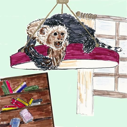 THE TROUBLE WITH MONKEY BUSINESSBut by the time they got back to the fraternity house, the novelty of their mascot was already wearing off. And the monkey was clearly tiring of them. As soon as they went into the house she got loose, climbed the bookcase, knocking books asunder, jumped to the curtains, ripping them, then to the chandelier.