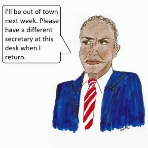 “Yes. But it’s okay. She’s getting the work done. So it’s not a problem. Thanks for asking. Now, I have to get to a meeting.”