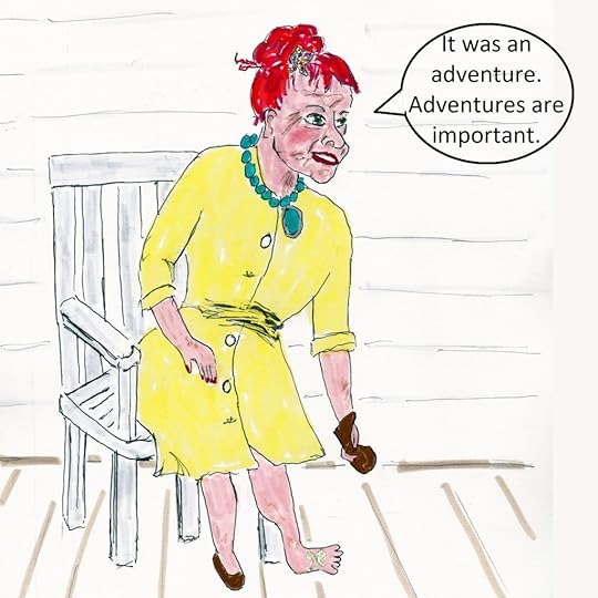 She was old — as old as Grandmama and even more wrinkled. But nothing else about her was like my grandmama. Her hair was so red it was almost purple. It was piled up on her head and held by a glittery butterfly hairpin. And she had on red, red lipstick! And rouge!