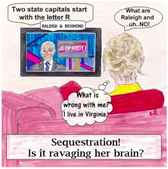 It’s nearly seven. We have spaghetti for dinner and I flop on the couch to watch Jeopardy. I miss clues I should know and I’m sure my brain is dying.