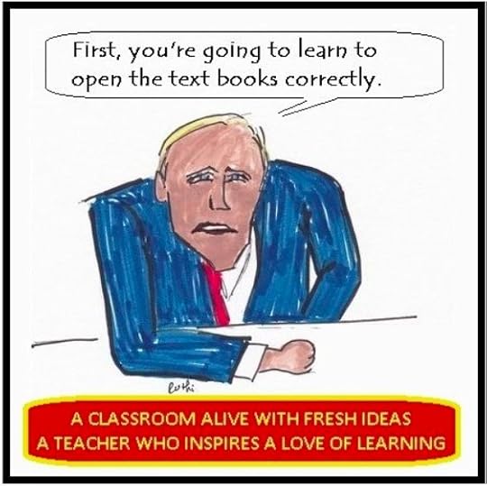 “These books are new and we have to open them correctly so the spines don’t break. Now, everybody, open the front cover of your book – all the way. That’s it. Now, smooth it flat.” He looked around the room. “No, don’t bend it back. Smoooooth it.” Once he was satisfied with the smoothing, he said, “Now, do the same with the back cover. Okay. Now, turn back to the front. Open the first page, and smooth it down. Now, turn to the back … Now the front again….”
