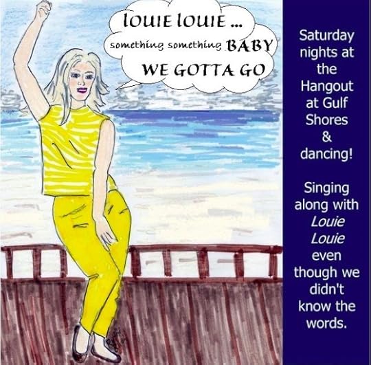 I’d go back to the hangout at Gulf Shores again – but the way it was when I was sixteen – before Gulf Shores was all high-rises and hotels. Then the only buildings in all that white sand were a couple of shell shops, a bar or two, and the Hangout, a hamburger stand with a cement dance floor and non-stop dance records by the Platters, Beach Boys, and the Mamas and Papas. I’d sing along again to Louie Louie — even though nobody ever understood the words.