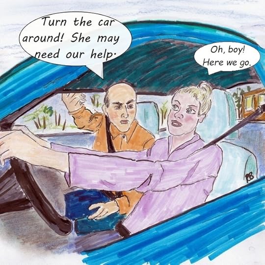 Ron saw a totally different scene. He saw a woman in distress, a woman needing his help. However improbable that was, the urge overtook him and he threw safety to the winds.