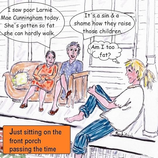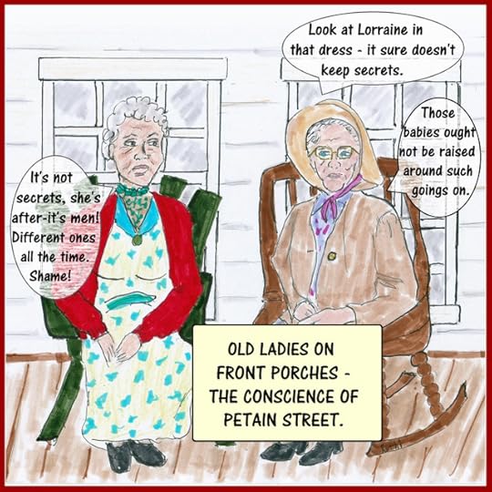 Grandma and I lived with my mama and daddy on the kinda poor side, where the grass was cut, the houses were painted, and most of the people who lived in them were old – Grandma, Mrs. Summerall, Mrs. Gates, Mrs. Burns, Mrs. Weaver, Mrs. Ward, and Mrs. Honeycutt. There was only one other child my age on the street, so I grew up with plenty of time to spend sitting on front porches, listening to their old stories and their reckonings about what was good and bad in the people who passed by – and what they ought to do to be better.