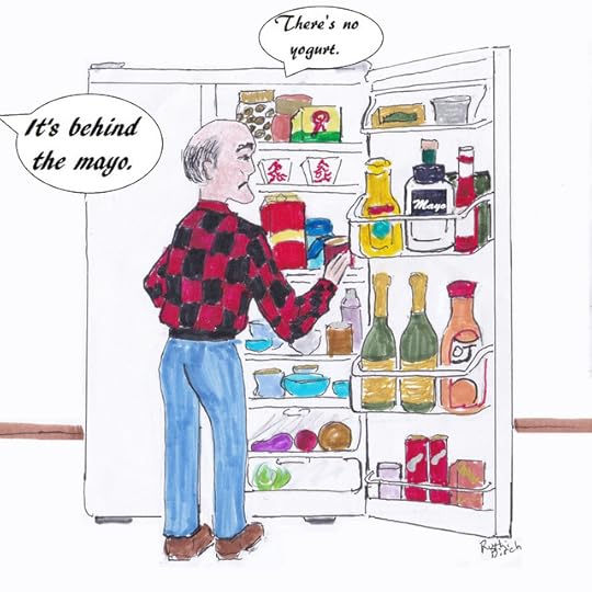 More than once, I’ve found Ron frustrated as he stares into the refrigerator. “We’re out of salad dressing.” I go to the fridge, move the jar of mayonnaise, and there’s the dressing, hiding from him. It’s become our little joke.
