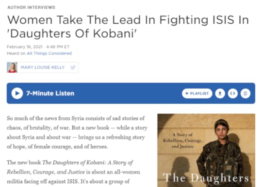 This is very Interesting, isn’t it? My novel is about these women that fought in Kobane, Syria against Daesh, particularly two best friends, it is fictional but based on extensive research I did over 3 years (it was published in 2019). Good to see these courageous women getting attention.