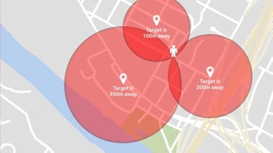 I slutändan behövs dock bara en manuell triangulering för att hitta en nästan exakt position med denna funktion. Ställ dig på tre olika platser och gör en cirkel som har detta angivna avstånd som radie. Där dessa tre cirklar möts är platsen som individen står på.