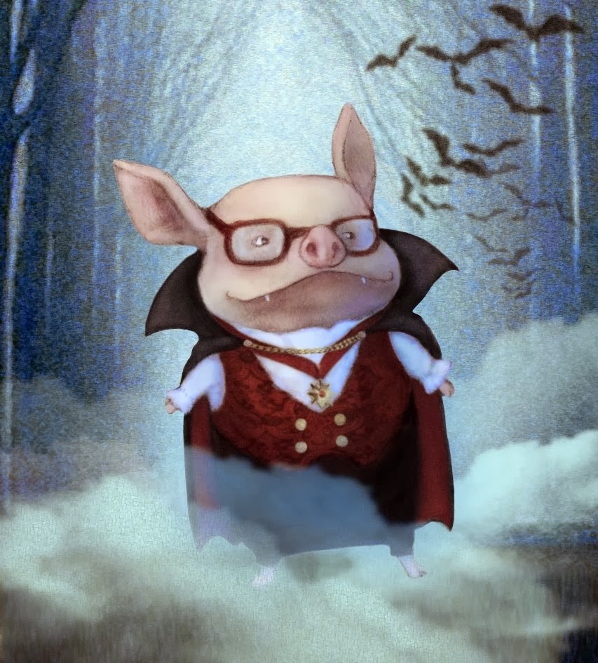 Yes-its true, I am the illustrator behind Mr. Pig of the fabulous Little Crooked Cottage blog. I dressed up Mr. Pig especially for Halloween last night-he was very excited. AND, by the way they are running an awesome book give away-check it out!