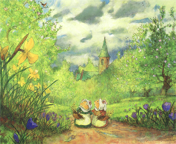 #redwall #kidlitart #art #artwork#brianjacques #artstagram #acrylic#paint #childrensbooks #instaart#mice#best_of_illustrations #flowers #spring#instaspring #green #redwallabbey#dafodill #cookbook