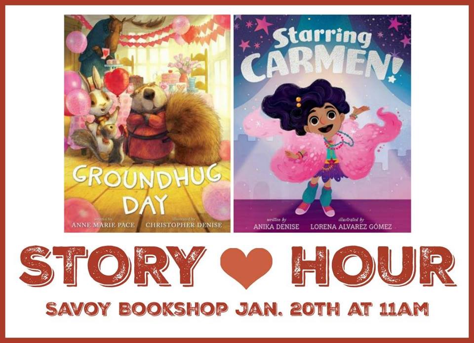 Join us on Saturday, for a hugs & hearts storytime + book signing! Anika Denise and I will be at the Savoy Bookshop and Cafe in Westerly, RI. (Because signed books make excellent Valentines, don't you agree?)