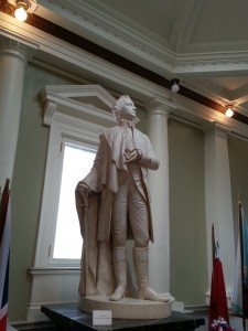 My upcoming book BUNKER HILL: A CITY, A SIEGE, A REVOLUTION (due out April 30) focuses on one of the great unsung heroes of Revolutionary Boston: Dr. Joseph Warren. Warren was not only president of the Provincial Congress and a major general; he was the one who ordered Paul Revere to alert the countryside that the British were headed for Concord. If he hadn’t been killed at the Battle of Bunker Hill, Warren might have been one of the Founding Fathers we revere today. Here’s a picture I took of a statue of Warren that’s in the Lodge of the Bunker Hill Monument.