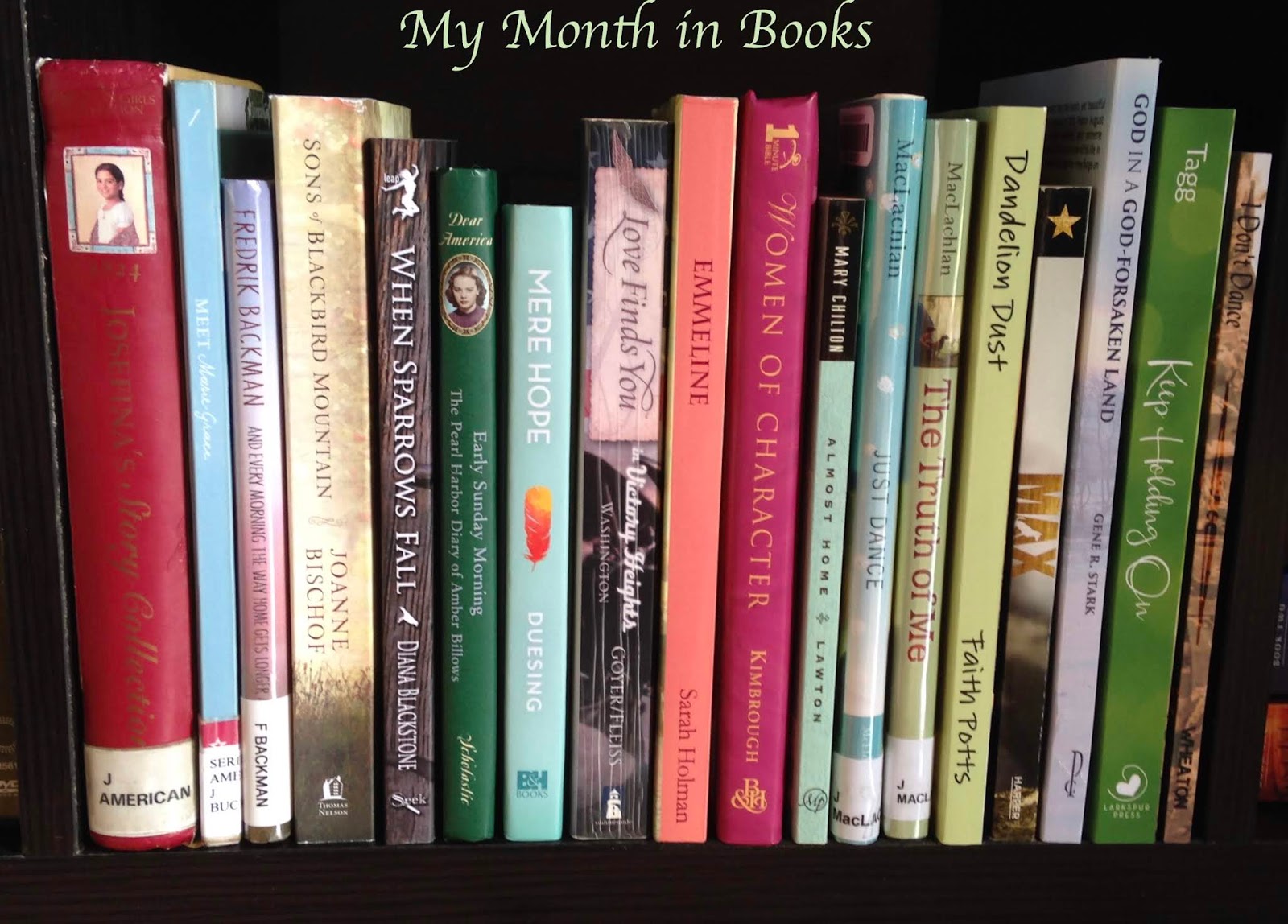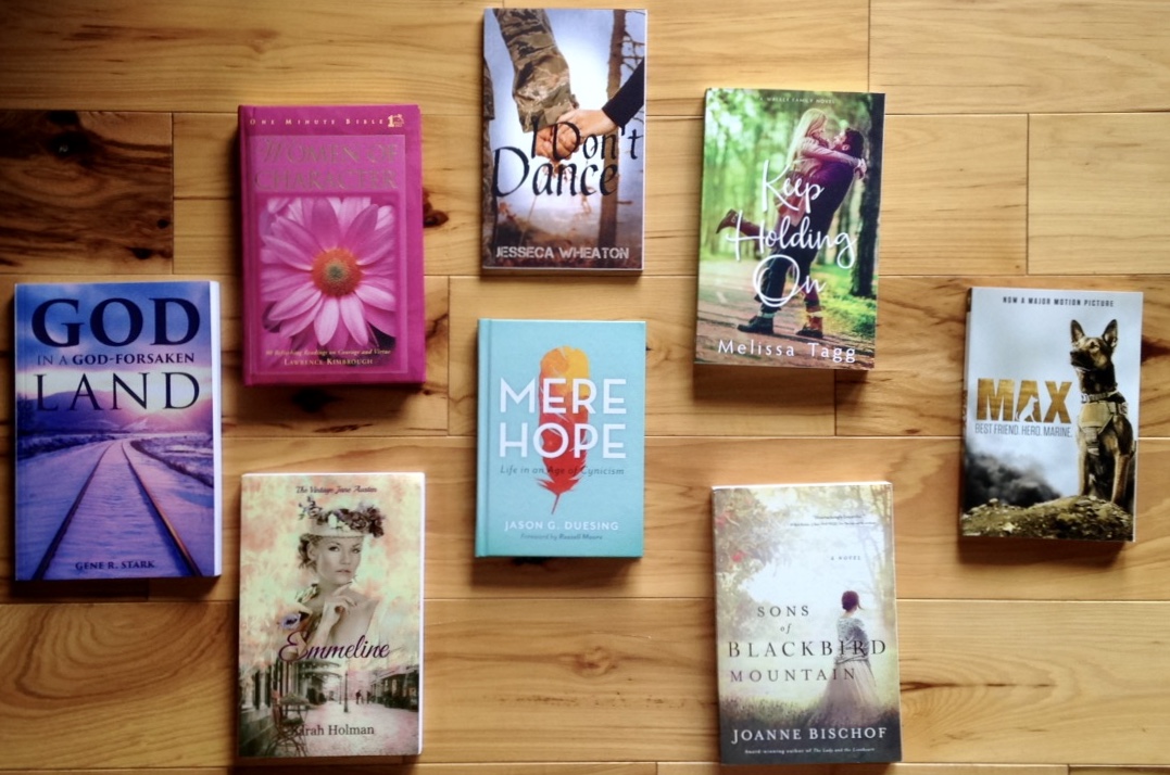 God in a God-forsaken Land by Gene Stark -- review bookWoman of Character compiled by Lawrence Krimbough -- giftEmmeline by Sarah Holman -- gift from a friend I Don't Dance by Jesseca Wheaton -- gift from a friend Mere Hope by Jason Duesing -- review bookKeep Holding On by Melissa Tagg -- gift from a friend Sons of Blackbird Mountain by Joanne Bischof -- CBD Max by Jennifer Li Shotz -- Barnes & Noble