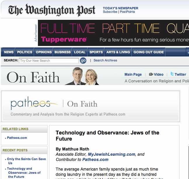 Oh, hey! Check it out: My article for Patheos on Orthodox Jews and technology got picked up by the Washington Post and Newsweek!