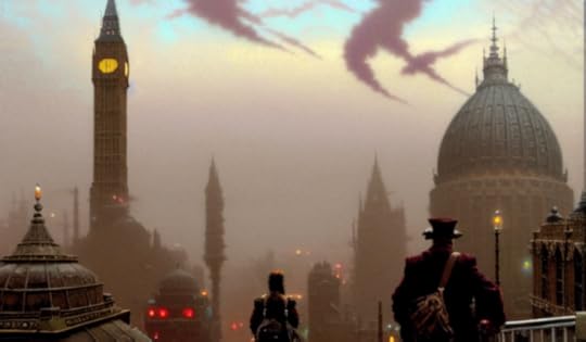 Welcome to Londinium! The city of London reborn on an archipelago of small skylands interconnected with bridges and tubes, the skies filled with gigantic dirigible airships and thousand car skytrains, flying tugs, drones, grav cars and people flitting about in ultralight aircraft or flying about with their “Bumblebee” flight rigs. The skies are often filled with glowing clouds and dark fogs that would make Old Blighty proud. Big Ben still chimes the hour, and the Old Bailey materializes and vanishes in the fog like the legendary town of Brigadoon.