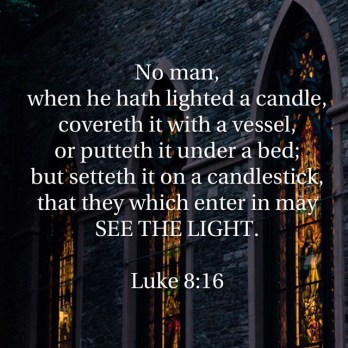 No man, when he hath lighted a candle, covereth it with a vessel, or putteth it under a bed; but setteth it on a candlestick, that they which enter in may see the light.
