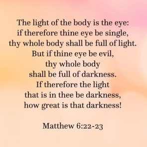 The light of the body is the eye: if therefore thine eye be single, thy whole body shall be full of light.