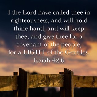 I the LORD have called thee in righteousness, and will hold thine hand, and will keep thee, and give thee for a covenant of the people, for a light of the Gentiles;